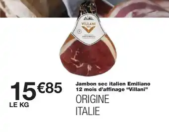 Offre VILLANI Jambon sec italien Emiliano 12 mois d'affinage chez Monoprix