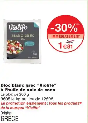 Actuellement en offre chez Monoprix : VIOLIFE Bloc blanc grec à l'huile de noix de coco ✅ Valable du 21-04 au 3-05.