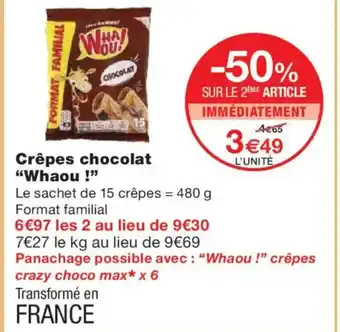 Actuellement en offre chez Monoprix : WHAOU! Crêpes chocolat ✅ Valable du 20-01 au 1-02.