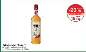 Actuellement en offre chez Monoprix : Whisky irish paddy ✅ Valable du 3-03 au 22-03.