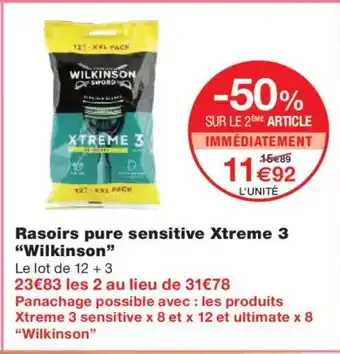 Actuellement en offre chez Monoprix : WILKINSON Rasoirs pure sensitive Xtreme 3 ✅ Valable du 16-12 au 31-12.