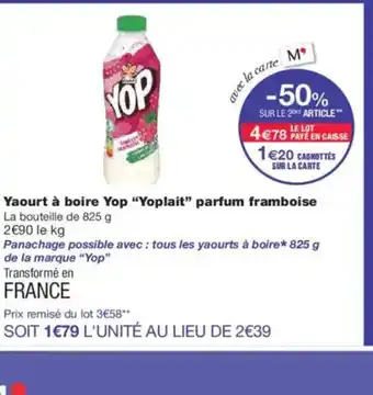 Actuellement en offre chez Monoprix : YOPLAIT Yaourt à boire Yop parfum framboise ✅ Valable du 1-01 au 18-01.