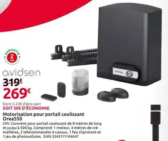 AVIDSEN Motorisation pour portail coulissant Orea550 offres et promotions en ligne chez Mr Bricolage