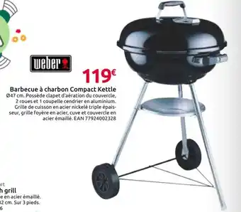Cette Barbecue à charbon Compact Kettle est maintenant disponible chez Mr Bricolage. Découvrez toutes les promos en cours et profitez de réductions intéressantes. Commandez Barbecue à charbon Compact Kettle en ligne via le site officiel de Mr Bricolage ou achetez-la en magasin à un prix avantageux. Promocatalogues.fr réunit chaque jour les meilleures offres liées à Barbecue à charbon Compact Kettle. Envie d’être informé en premier ? Activez l’alerte en cliquant sur la cloche pour recevoir une notification gratuite dès que ce produit revient en promotion.Questions fréquemment posées au sujet de Barbecue à charbon Compact Kettle