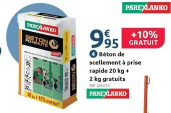 Actuellement, Béton de scellement à prise rapide est en promotion chez Mr Bricolage. Toutes les informations utiles comme le prix, les conditions et la durée de validité sont affichées sur cette page. Consultez également les promotions similaires pour Béton de scellement à prise rapide, afin de faire le meilleur choix. La promo Béton de scellement à prise rapide est valable du 08-04-2026 au 26-04-2026. Si elle est expirée, regardez les autres offres équivalentes. Vous pouvez aussi suivre cette catégorie de produit pour être alerté lorsqu’une nouvelle promotion Béton de scellement à prise rapide apparaît chez Mr Bricolage.Questions fréquemment posées au sujet de Béton de scellement à prise rapide