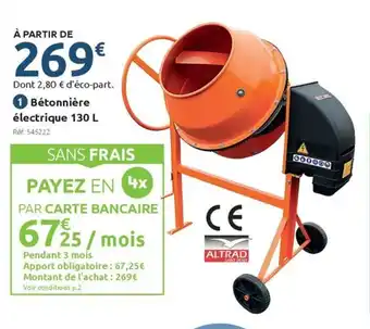 Actuellement en offre chez Mr Bricolage : Bétonnière électrique ✅ Valable du 11-03 au 29-03.
