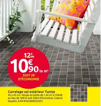 Cette Carrelage sol extérieur Tunise est maintenant disponible chez Mr Bricolage. Découvrez toutes les promos en cours et profitez de réductions intéressantes. Commandez Carrelage sol extérieur Tunise en ligne via le site officiel de Mr Bricolage ou achetez-la en magasin à un prix avantageux. Promocatalogues.fr réunit chaque jour les meilleures offres liées à Carrelage sol extérieur Tunise. Envie d’être informé en premier ? Activez l’alerte en cliquant sur la cloche pour recevoir une notification gratuite dès que ce produit revient en promotion.Questions fréquemment posées au sujet de Carrelage sol extérieur Tunise