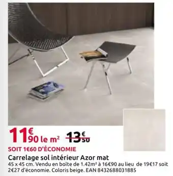 Actuellement en offre chez Mr Bricolage : Carrelage sol intérieur Azor mat ✅ Valable du 25-03 au 19-04.