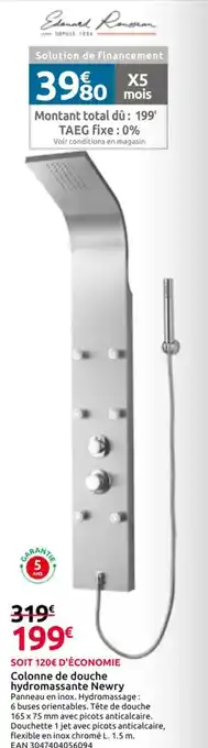 Colonne de douche hydromassante Newry offres et promotions en ligne chez Mr Bricolage