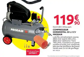 Compresseur horizontal 2 cv prodair offres et promotions en ligne chez Mr Bricolage