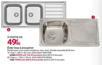 Cette Évier inox à encastrer est maintenant disponible chez Mr Bricolage. Découvrez toutes les promos en cours et profitez de réductions intéressantes. Commandez Évier inox à encastrer en ligne via le site officiel de Mr Bricolage ou achetez-la en magasin à un prix avantageux. Promocatalogues.fr réunit chaque jour les meilleures offres liées à Évier inox à encastrer. Envie d’être informé en premier ? Activez l’alerte en cliquant sur la cloche pour recevoir une notification gratuite dès que ce produit revient en promotion.Questions fréquemment posées au sujet de Évier inox à encastrer