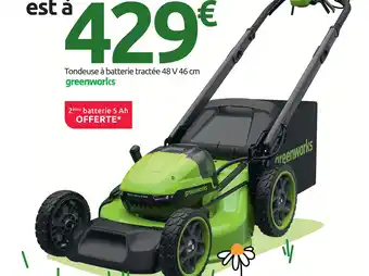 Actuellement en offre chez Mr Bricolage : Greenworks tondeuse à batterie tractée 48 v 46 cm ✅ Valable du 4-03 au 22-03.