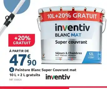 Actuellement en offre chez Mr Bricolage : INVENTIV Peinture Blanc Super Couvrant mat ✅ Valable du 8-04 au 26-04.