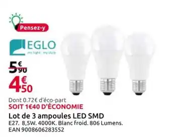 Lot de 3 ampoules led smd : offres et promos Mr Bricolage à découvrir