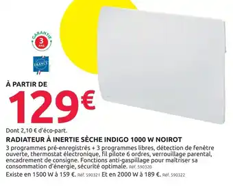 Noirot radiateur à inertie sèche indigo 1000 w offres et promotions en ligne chez Mr Bricolage
