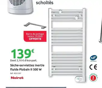 Actuellement en offre chez Mr Bricolage : NOIROT Sèche-serviettes inertie fluide Flobain II 500 W ✅ Valable du 28-01 au 15-02.