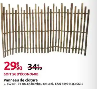 En plus de l'offre Panneau de clôture, Mr Bricolage propose une large gamme de produits. Consultez le Catalogue Mr Bricolage hebdomadaire pour découvrir les meilleures offres et promotions. En plus de Panneau de clôture, il y a aussi : Panneau de clôture en bambou, Panneau soudé & Panneau osb3.