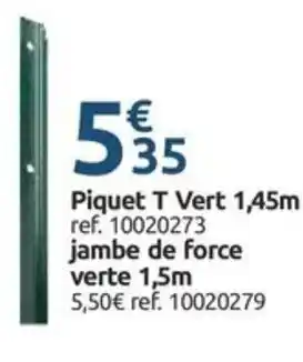 Actuellement en offre chez Mr Bricolage : Piquet T Vert 1,45m ✅ Valable du 8-04 au 25-04.