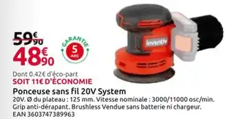 Actuellement en offre chez Mr Bricolage : Ponceuse sans fil 20V System ✅ Valable du 18-02 au 15-03.