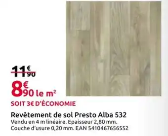 Actuellement en offre chez Mr Bricolage : Revêtement de sol Presto Alba 532 ✅ Valable du 18-02 au 15-03.