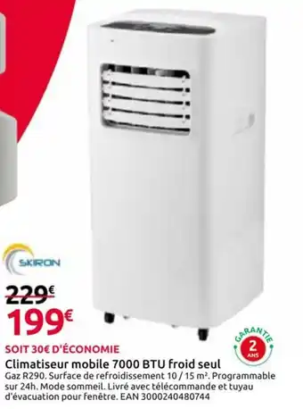 Offre SKIRON Climatiseur mobile 7000 BTU froid seul chez Mr Bricolage