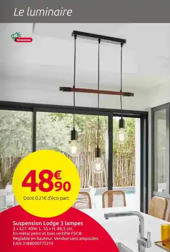 Actuellement en offre chez Mr Bricolage : Suspension Lodge 3 lampes ✅ Valable du 18-02 au 15-03.