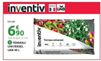 Le prix de l'offre Terreau universel uab se trouve également en haut de la page, ainsi que la date à laquelle l'offre est disponible. Vous pouvez également vérifier les prix dans le Catalogue Mr Bricolage actuel ou sur le site Internet de Mr Bricolage. Les offres vous permettent d'acheter les produits Mr Bricolage au prix le plus bas.