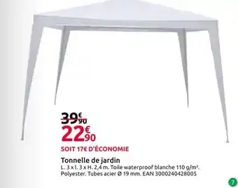 Cette Tonnelle de jardin est maintenant disponible chez Mr Bricolage. Découvrez toutes les promos en cours et profitez de réductions intéressantes. Commandez Tonnelle de jardin en ligne via le site officiel de Mr Bricolage ou achetez-la en magasin à un prix avantageux. Promocatalogues.fr réunit chaque jour les meilleures offres liées à Tonnelle de jardin. Envie d’être informé en premier ? Activez l’alerte en cliquant sur la cloche pour recevoir une notification gratuite dès que ce produit revient en promotion.Questions fréquemment posées au sujet de Tonnelle de jardin