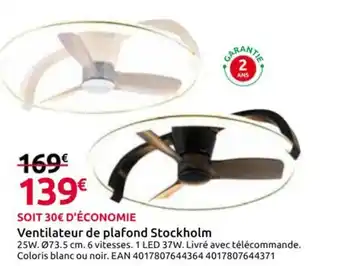 Actuellement en offre chez Mr Bricolage : Ventilateur de plafond Stockholm ✅ Valable du 18-02 au 15-03.