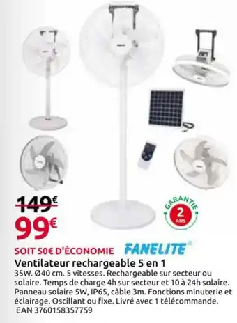 Actuellement en offre chez Mr Bricolage : Ventilateur rechargeable 5 en 1 ✅ Valable du 18-02 au 15-03.