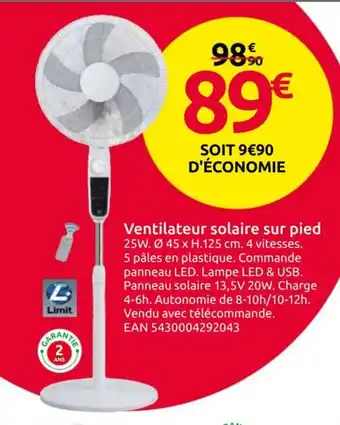 Actuellement en offre chez Mr Bricolage : Ventilateur solaire sur pied ✅ Valable du 25-03 au 19-04.