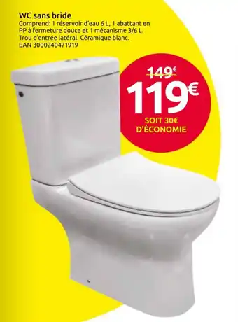 Offre WC sans bride chez Mr Bricolage