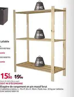 Étagère de rangement en pin massif brut