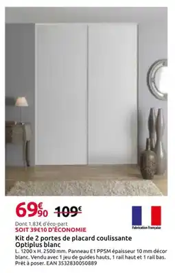 Kit de 2 portes de placard coulissante Optiplus blanc