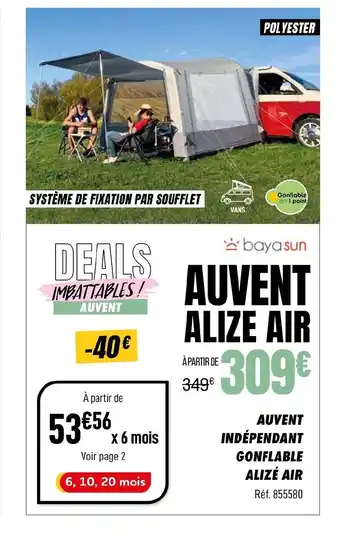 Actuellement en offre chez Narbonne accessoires : Auvent indépendant gonflable alizé air ✅ Valable du 4-02 au 21-02.
