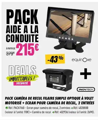 Le prix de l'offre Pack caméra de recul filaire simple optique à volet motorisé + ecran pour caméra de recul, 2 entrées se trouve également en haut de la page, ainsi que la date à laquelle l'offre est disponible. Vous pouvez également vérifier les prix dans le Catalogue Narbonne accessoires actuel ou sur le site Internet de Narbonne accessoires. Les offres vous permettent d'acheter les produits Narbonne accessoires au prix le plus bas.