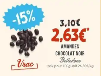 Actuellement en offre chez Naturalia : Amandes chocolat noir belledone ✅ Valable du 1-03 au 31-03.