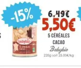 Actuellement en offre chez Naturalia : BABYBIO 5 céréales cacao ✅ Valable du 1-02 au 28-02.