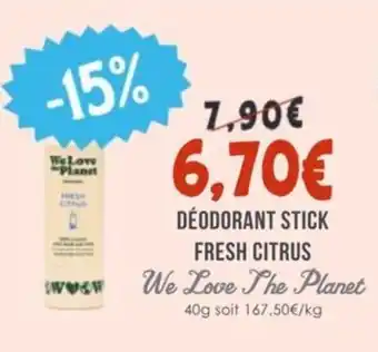 Actuellement en offre chez Naturalia : Déodorant stick fresh citrus we love the planet ✅ Valable du 1-03 au 31-03.