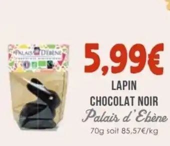 Actuellement en offre chez Naturalia : Lapin chocolat noir palais d'ebène ✅ Valable du 1-03 au 31-03.