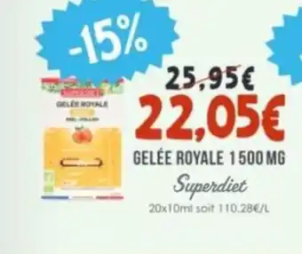 Actuellement, SUPERDIET Gelée royale est en promotion chez Naturalia. Toutes les informations utiles comme le prix, les conditions et la durée de validité sont affichées sur cette page. Consultez également les promotions similaires pour SUPERDIET Gelée royale, afin de faire le meilleur choix. La promo SUPERDIET Gelée royale est valable du 01-02-2026 au 28-02-2026. Si elle est expirée, regardez les autres offres équivalentes. Vous pouvez aussi suivre cette catégorie de produit pour être alerté lorsqu’une nouvelle promotion SUPERDIET Gelée royale apparaît chez Naturalia.Questions fréquemment posées au sujet de SUPERDIET Gelée royale