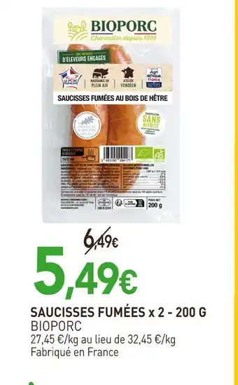 Bioporc saucisses fumées x 2 - 200 g : offres et promos naturéO à découvrir