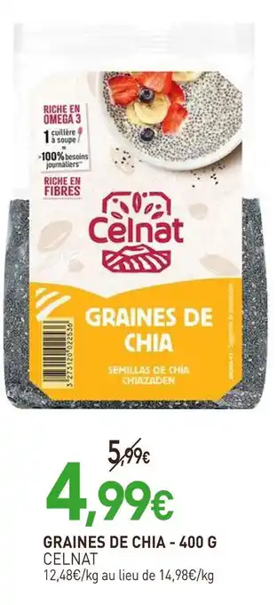 En plus de l'offre Celnat graines de chia, naturéO propose une large gamme de produits. Consultez le Catalogue naturéO hebdomadaire pour découvrir les meilleures offres et promotions. En plus de Celnat graines de chia, il y a aussi : Celnat flocons 5 céréales, CELNAT Gluten de blé & Gressin 3 graines.