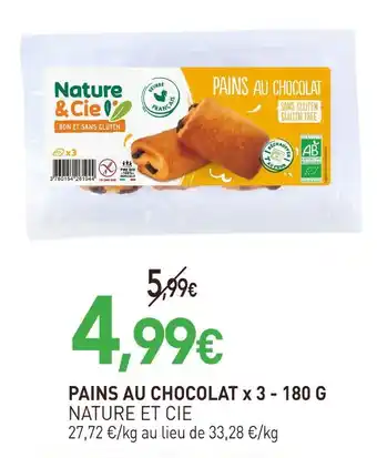 Offre Nature et cie pains au chocolat x 3 - 180 g chez naturéO
