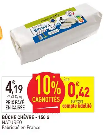 Actuellement en offre chez naturéO : Naturéo bûche chêvre - 150 g ✅ Valable du 4-02 au 22-02.