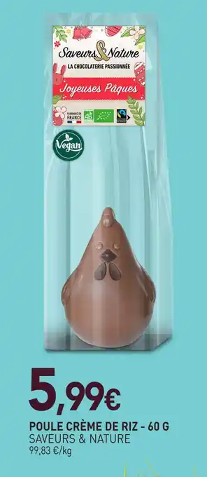 En plus de l'offre Saveurs & nature poule crème de riz, naturéO propose une large gamme de produits. Consultez le Catalogue naturéO hebdomadaire pour découvrir les meilleures offres et promotions. En plus de Saveurs & nature poule crème de riz, il y a aussi : Saveurs & nature poule dodue chocolat lait, Saveurs & nature poule tricot chocolat au lait & Poule.