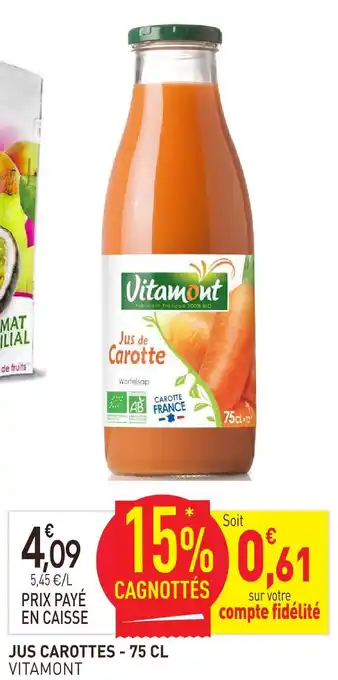 Actuellement en offre chez naturéO : Vitamont jus carottes - 75 cl ✅ Valable du 25-02 au 22-03.