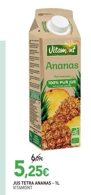 Actuellement en offre chez naturéO : Vitamont jus tetra ananas - 1l ✅ Valable du 29-04 au 24-05.