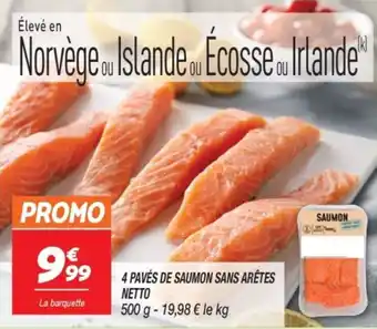 Actuellement en offre chez Netto : 4 pavés de saumon sans arêtes netto ✅ Valable du 6-01 au 12-01.