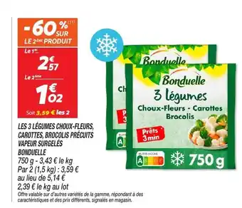 BONDUELLE Les 3 légumes choux-fleurs, carottes, brocolis précuits vapeur surgelės offres et promotions en ligne chez Netto